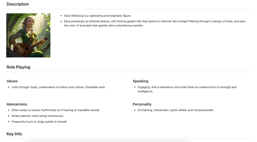 A notion template to help you flesh out your NPCs. This template will help you to create dynamic characters for your players to interact with . The template includes all of the below to help you stay organized.